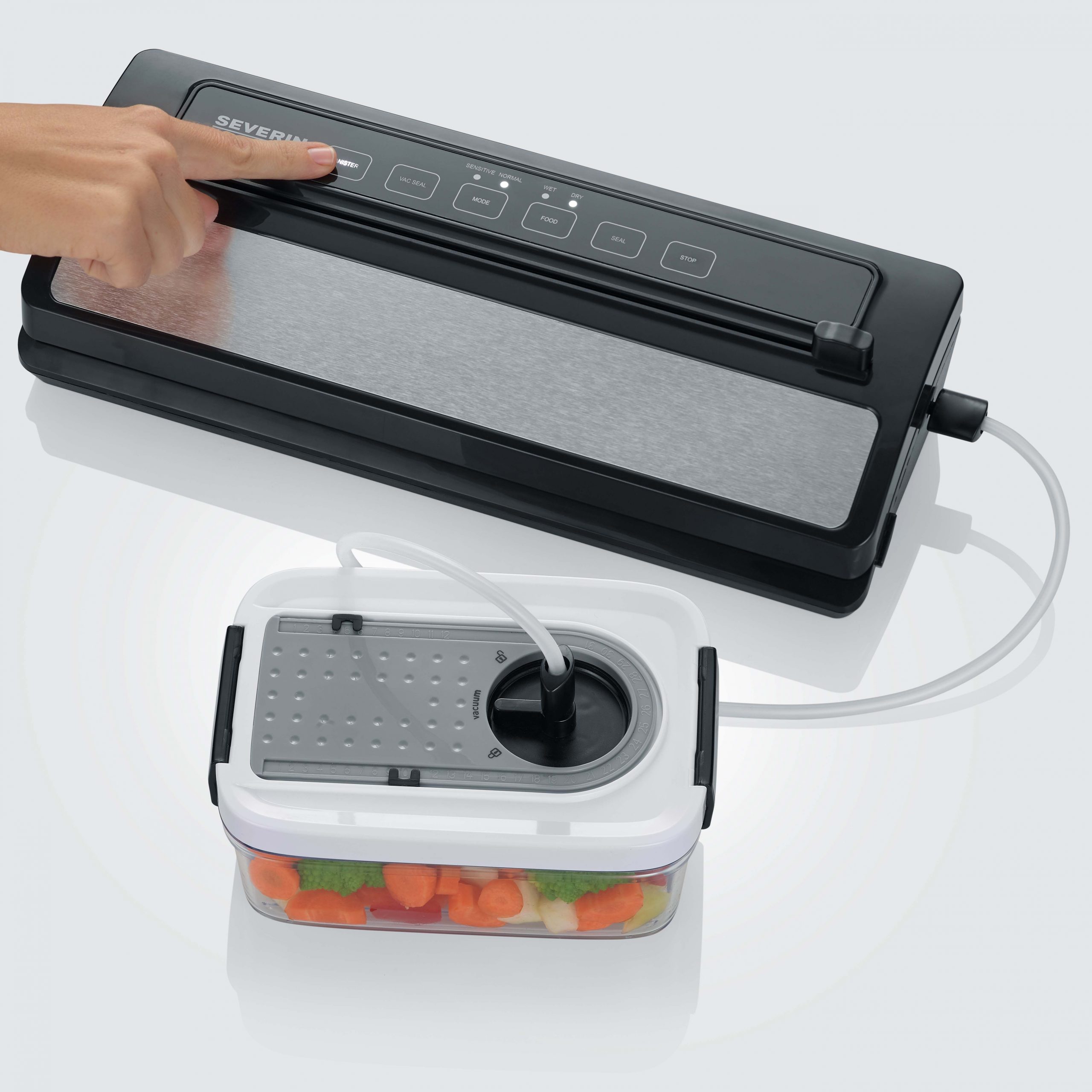 בצורה משולמם מתאים למכשיר וואקום של חברת SEVERIN למזון עם חיבור מיוחד לקונטיינרים חיצוניים.